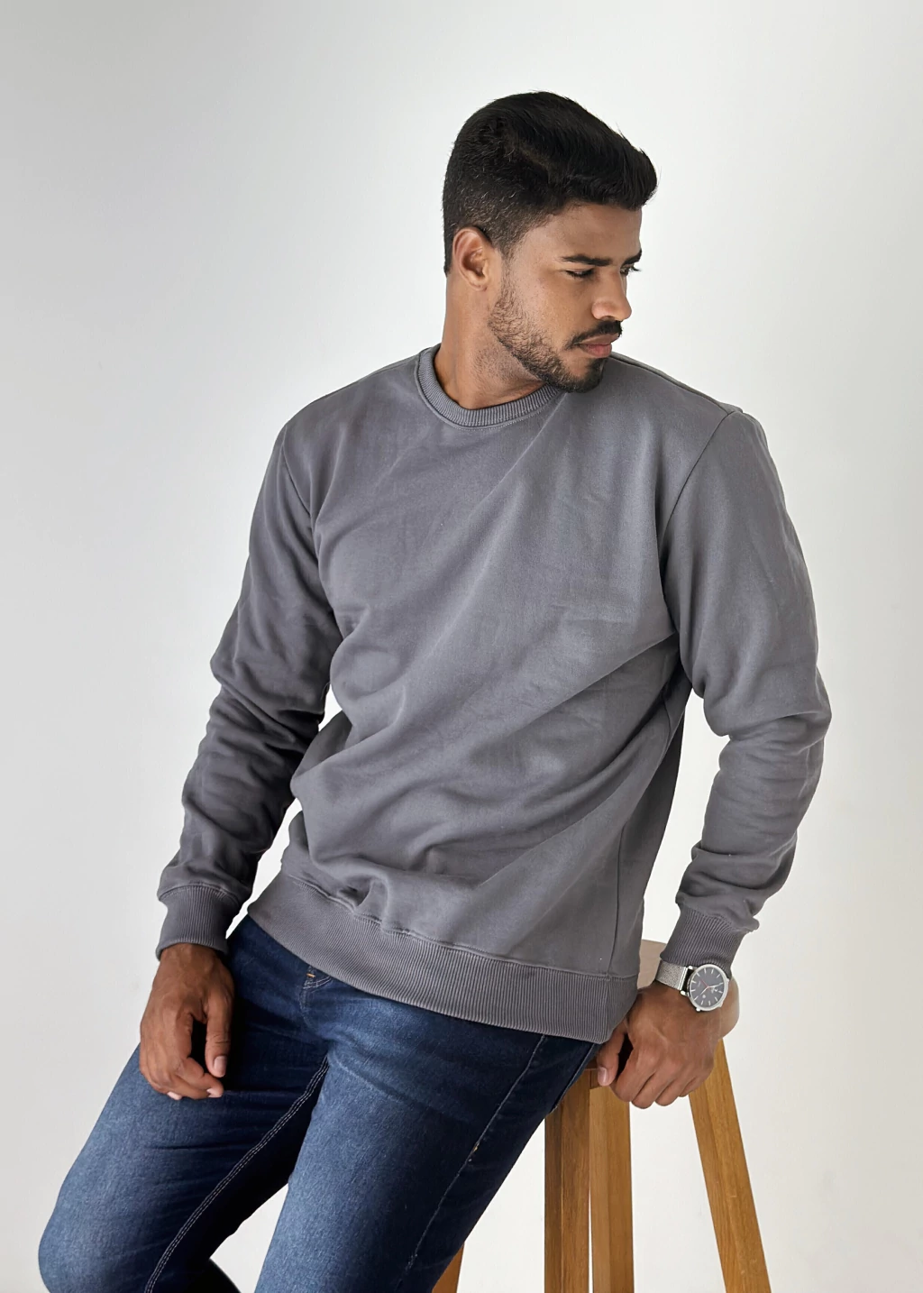 Possui gola careca clássica, punhos e barra com acabamento em ribana, que proporcionam melhor ajuste ao corpo e maior durabilidade da peça. Sua modelagem confortável garante ótimo caimento, sendo ideal tanto para composições casuais quanto para looks mais urbanos e minimalistas. Um item essencial e atemporal, fácil de combinar com jeans, sarja ou moletom, perfeito para uso diário.